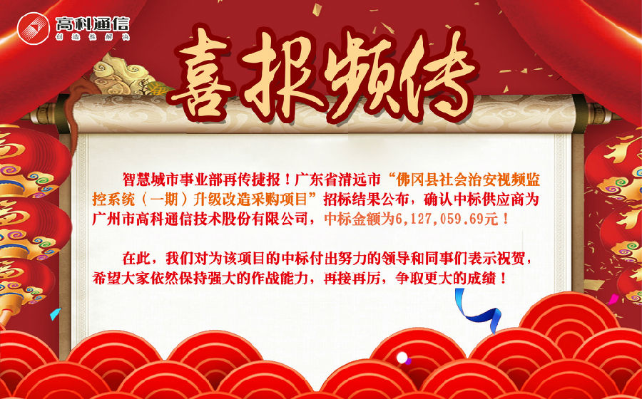 喜報|高科中標(biāo)佛岡社會治安視頻監(jiān)控一期升級改造采購項(xiàng)目